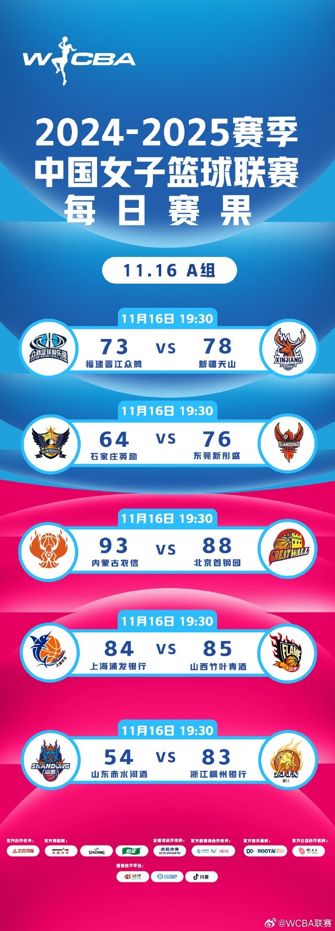 11月16日常规赛第一轮A组,山东赤水河酒54:83浙江稠州银行。山东队曹君伟得到15分4篮板3助攻,浙江队王佳琦拿下22分6篮板4助攻。