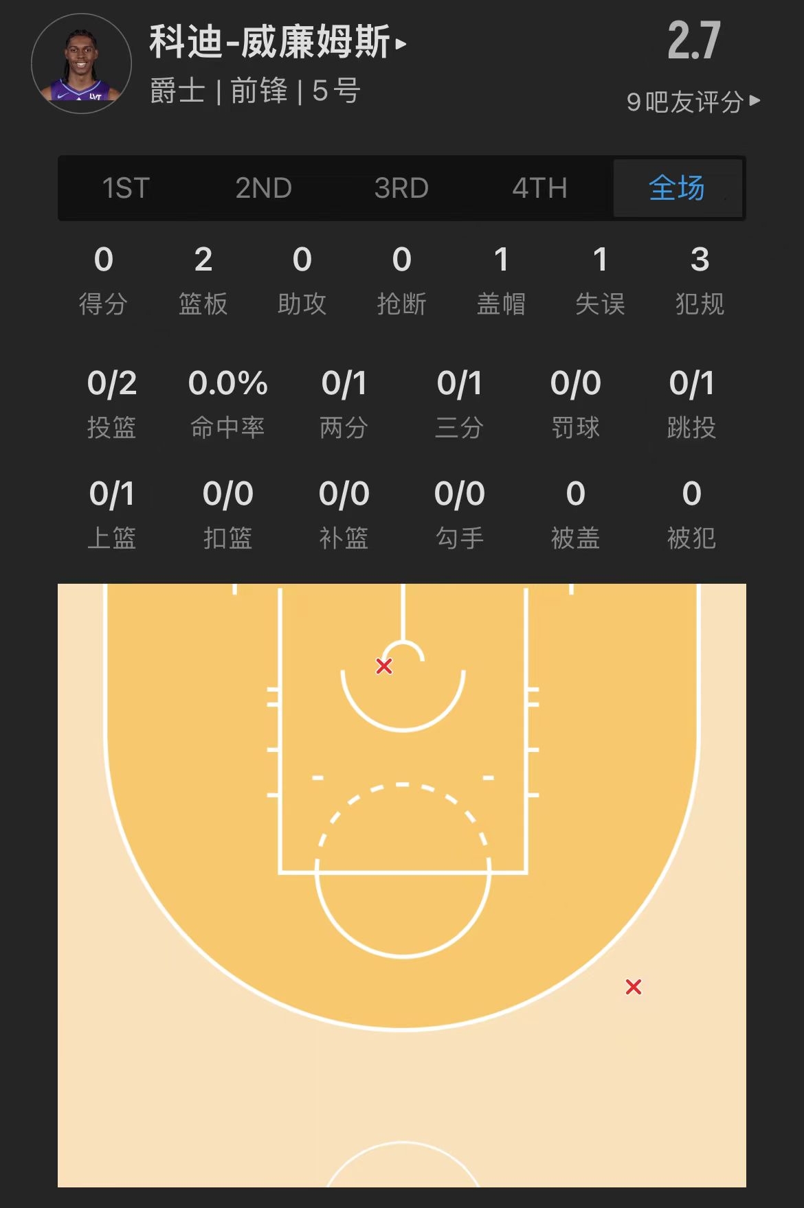 爵士10号秀 科迪-威廉姆斯 登场14.7分钟