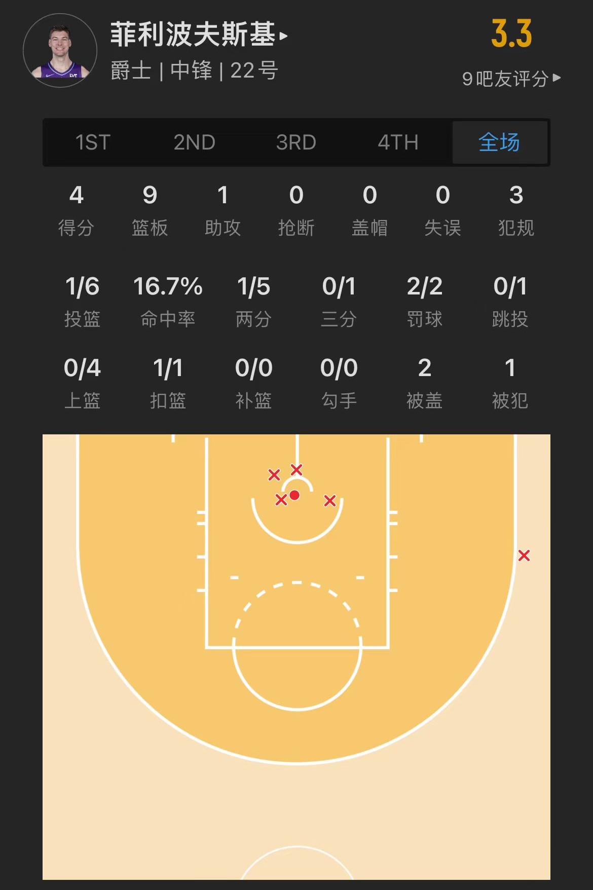 爵士32号秀 凯尔-菲利波夫斯基 登场18.1分钟