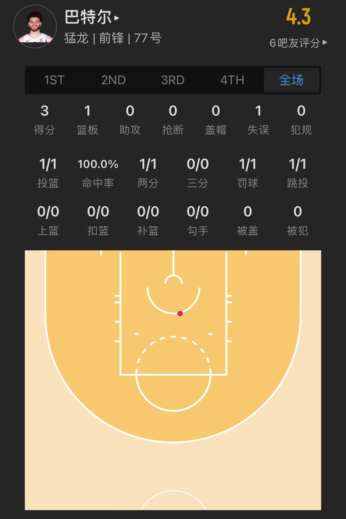 猛龙落选秀 贾米森-巴特尔 登场7.4分钟