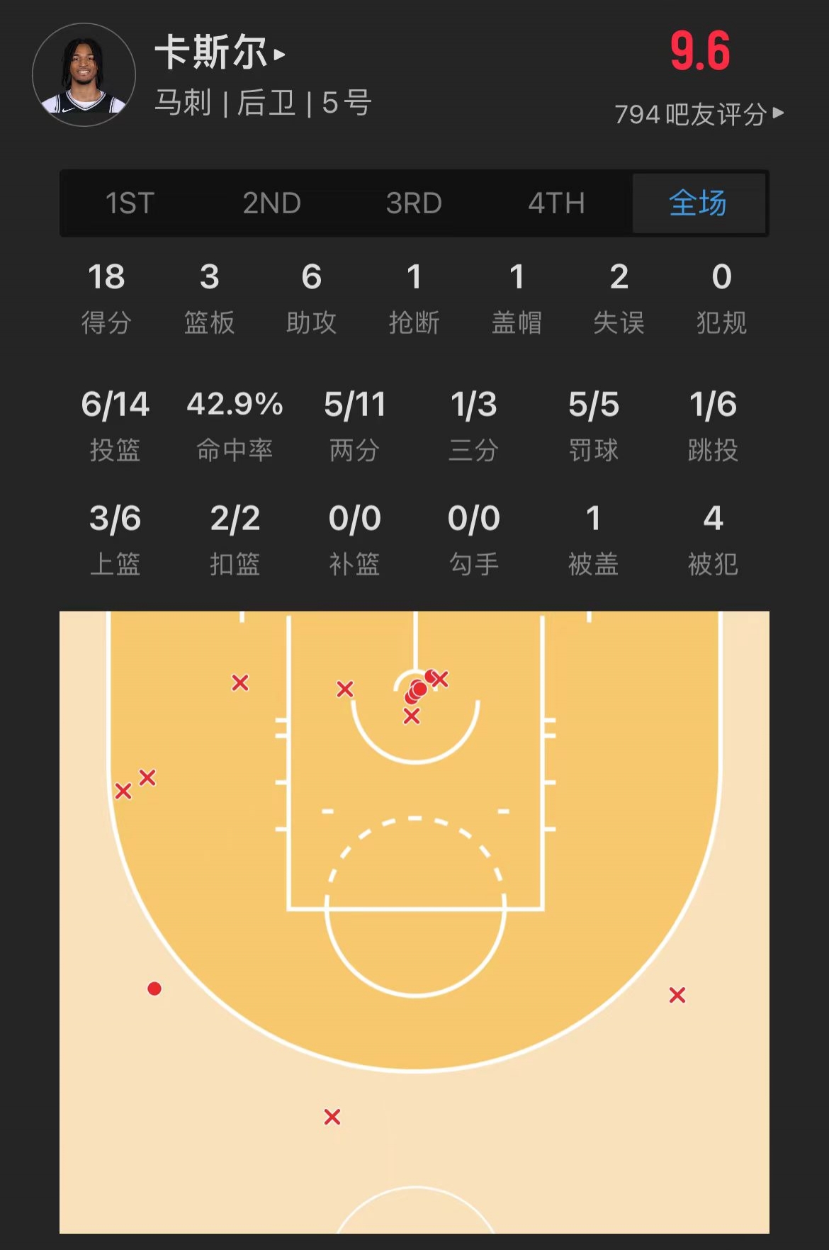 马刺4号秀 斯蒂芬-卡斯尔 登场34.5分钟
