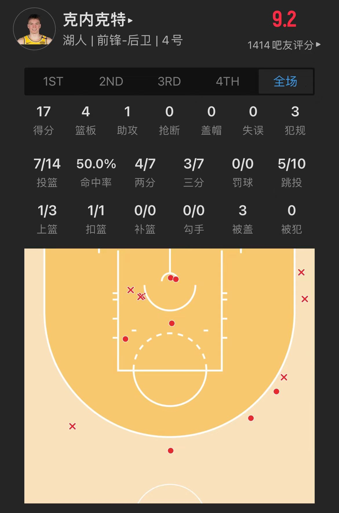 湖人17号秀 道尔顿-克内克特 登场39.1分钟