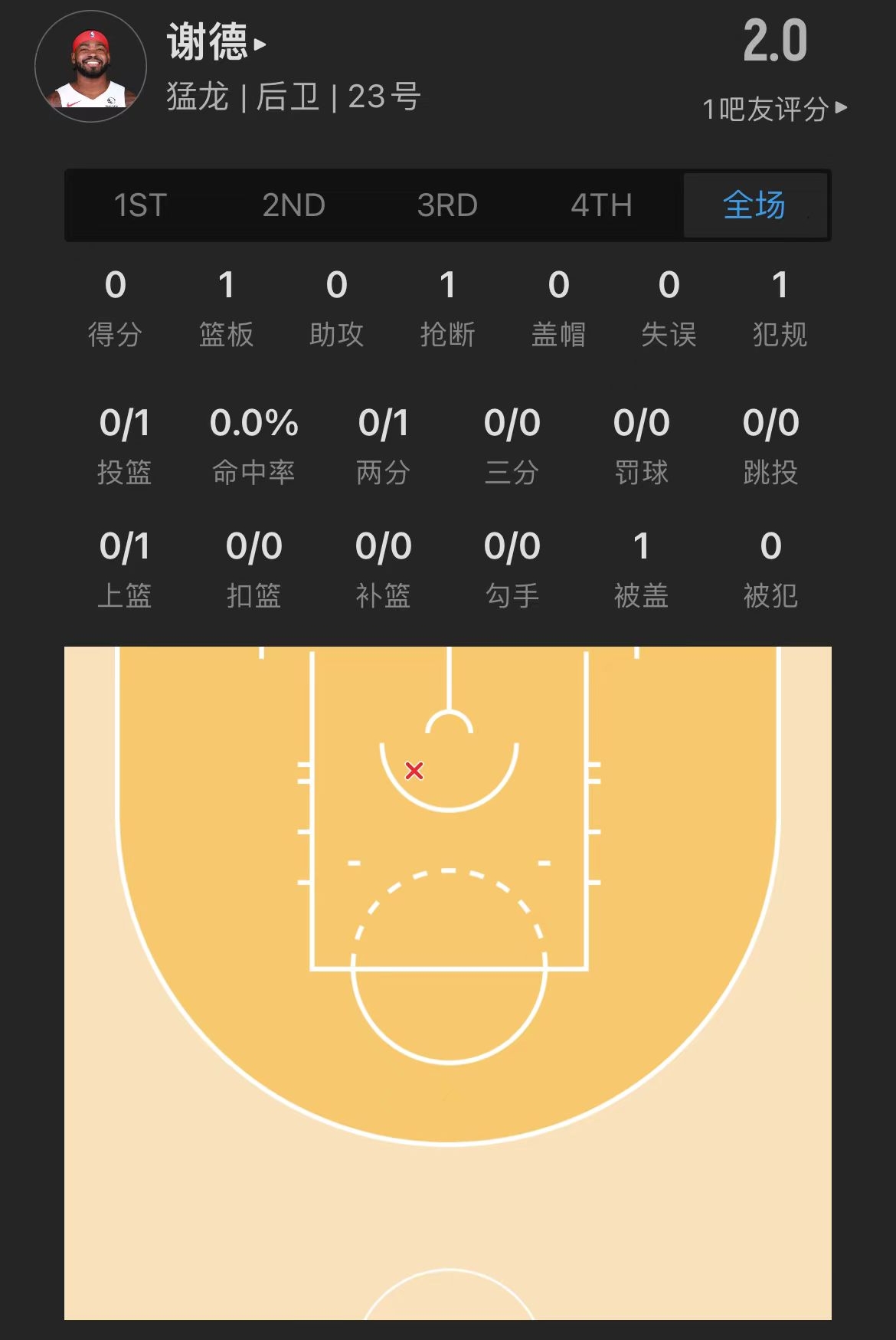 猛龙45号秀 贾马尔-谢德 登场8.2分钟