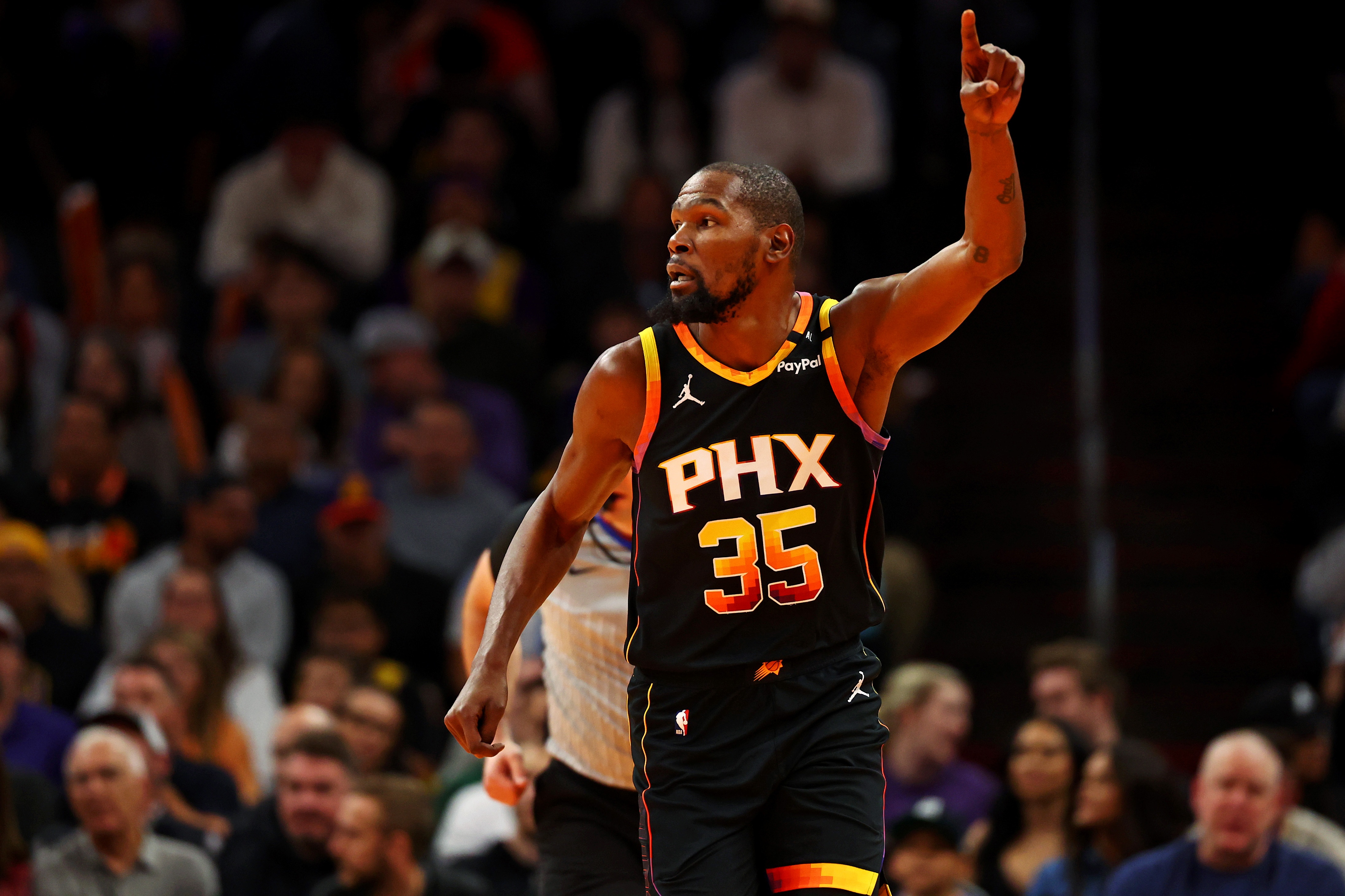 本场比赛,杜兰特出战35分40秒,投篮20中7,三分8中3,罚球6中4,得到21分10篮板3助攻3盖帽。布克37分钟20投8中,三分8中3、罚球8中8砍下全场最高27分9助攻外加3篮板2抢断。
