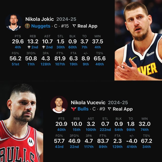 12月03日讯 美媒晒数据,本赛季目前只有两位球员在场均命中2记三分,命中率55%以上,三分45%以上的情况下场均20+10:约基奇和武切维奇。