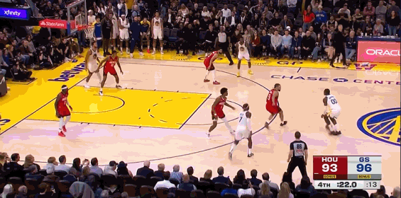 此役,在追梦和库里缺阵的情况下,库明加在进攻端挑大梁,他全场出战33分钟,投篮22中13,三分6中3,罚球6中4,得到33分6篮板2助攻1盖帽,得分创生涯新高。比赛最后时刻,库明加强硬上篮命中!