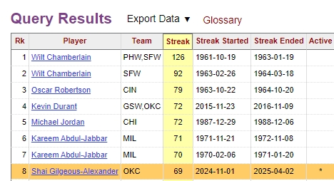 历史连续20+纪录: