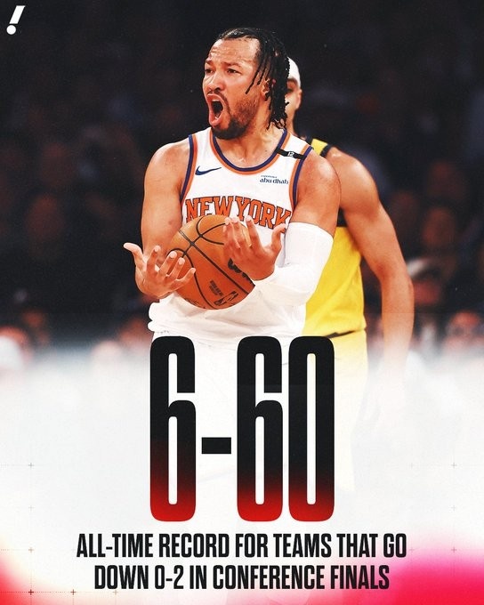 据统计,在分区决赛中0-2落后的球队,最终系列赛的战绩是6胜60负。