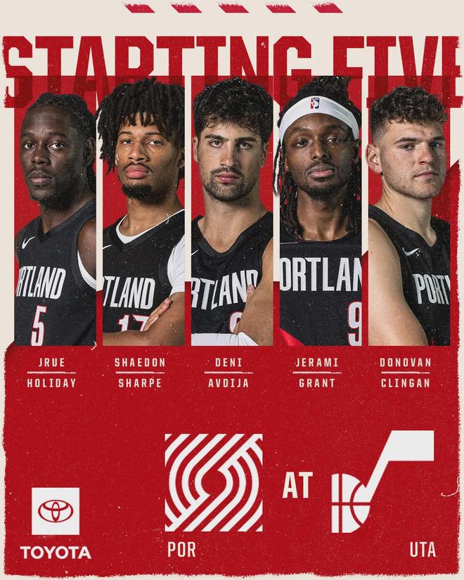 开拓者本场首发不变:霍勒迪、阿夫迪亚、夏普、格兰特、克林根。主帅比卢普斯表示,要为杨瀚森制定更多进攻战术。爵士首发:基昂特-乔治、米哈伊留克、马尔卡宁、菲利波夫斯基、凯斯勒。克林根+杨瀚森vs凯斯勒,值得期待!