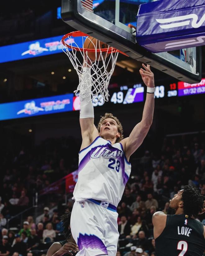 杨瀚森提升内线防守,但是当凯斯勒在弧顶持球,杨瀚森给予的防守压力不够,凯斯勒轻松传给空切篮下的马尔卡宁,上半场爵士至少有两个这种配合。半场战罢,开拓者64-60领先4分。霍勒迪和格兰特各砍13分,马尔卡宁13+2+4。