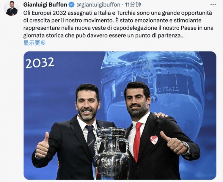 布冯谈意大利联合举办2032欧洲杯:于我们而言是巨大的发展机会