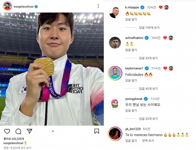 韩媒:李刚仁社媒庆祝获得亚运会金牌,姆巴佩第一个向他表示祝贺