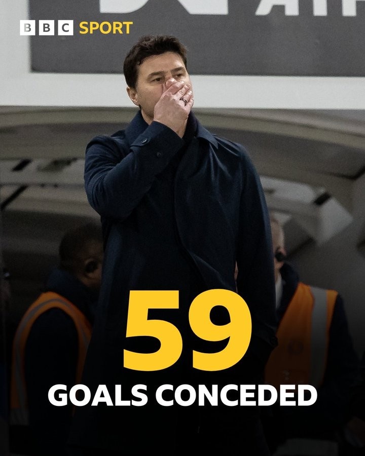切尔西2023年在英超赛场丢了59球,创队史单个日历年丢球纪录