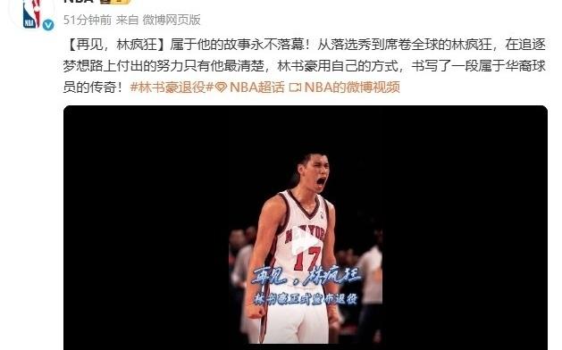 林书豪今日宣布退役NBA官微发文祝福:再见林疯狂!