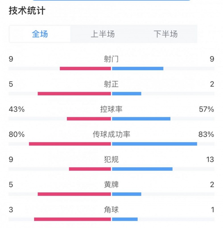 全场数据:武汉三镇客场未落下风,射门10比12几乎与浦和五五开