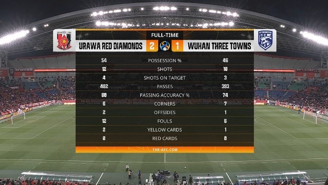 全场数据:武汉三镇客场未落下风,射门10比12几乎与浦和五五开