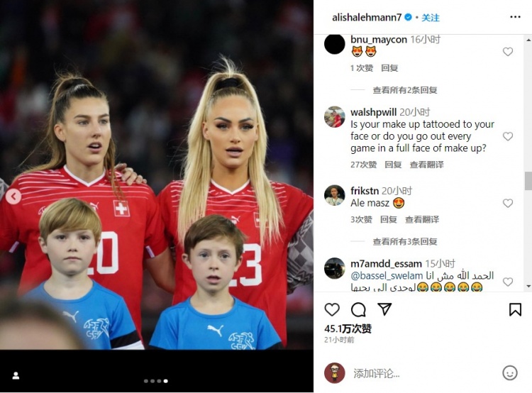 瑞士女足国脚莱曼带妆上阵惨败17,社媒遭球迷疯狂嘲讽