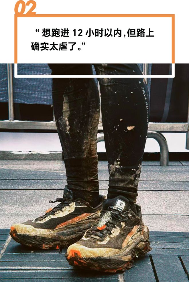 她告诉我们,她本来想在70公里提速,跑进12小时,但是山里的大雾、湿滑的赛道确实是不小的挑战。尤其是后面要结束前的4公里几乎是踩着泥巴在前进,脚都陷进去了,几乎没办法跑起来。