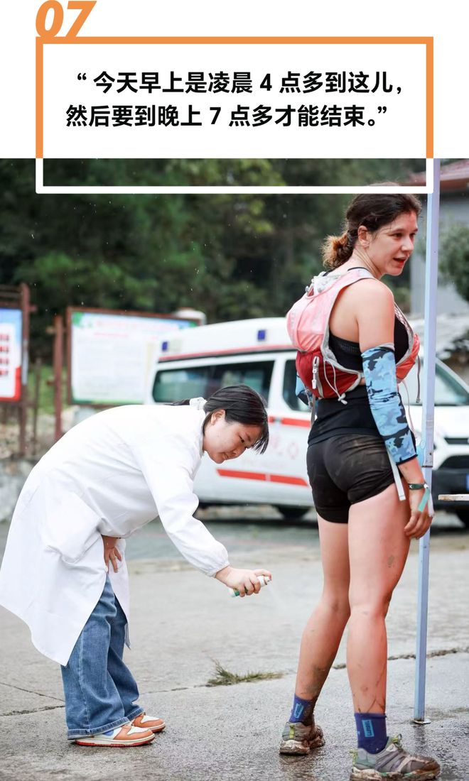 庄彬彬是本次赛事的医疗救援人员之一。她昨天刚上完夜班,今天又接着加班参与保障。凌晨4点多,她和同事们就已在救护车上随时待命。这已不是她第一次保障越野赛,去年的比赛中,她救助了很多擦伤和肌肉拉伤的选手。