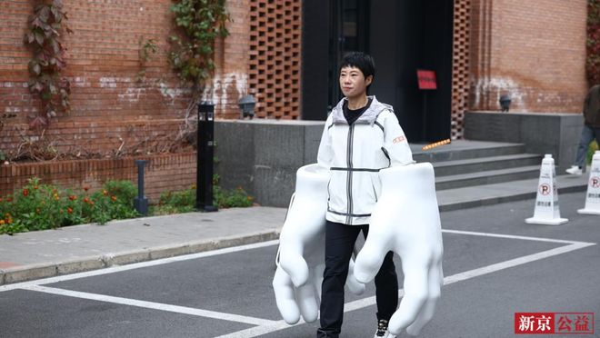 “我戴上这样一个巨大的手套来模拟部分‘淀粉人’患者的早期感知,比如手部肿胀、麻木,感受在这种患病情况下的生活状态。”张会介绍。在10月26日的“国际淀粉样变性日”来临之际,新京公益特别策划了这场公益体验活动。