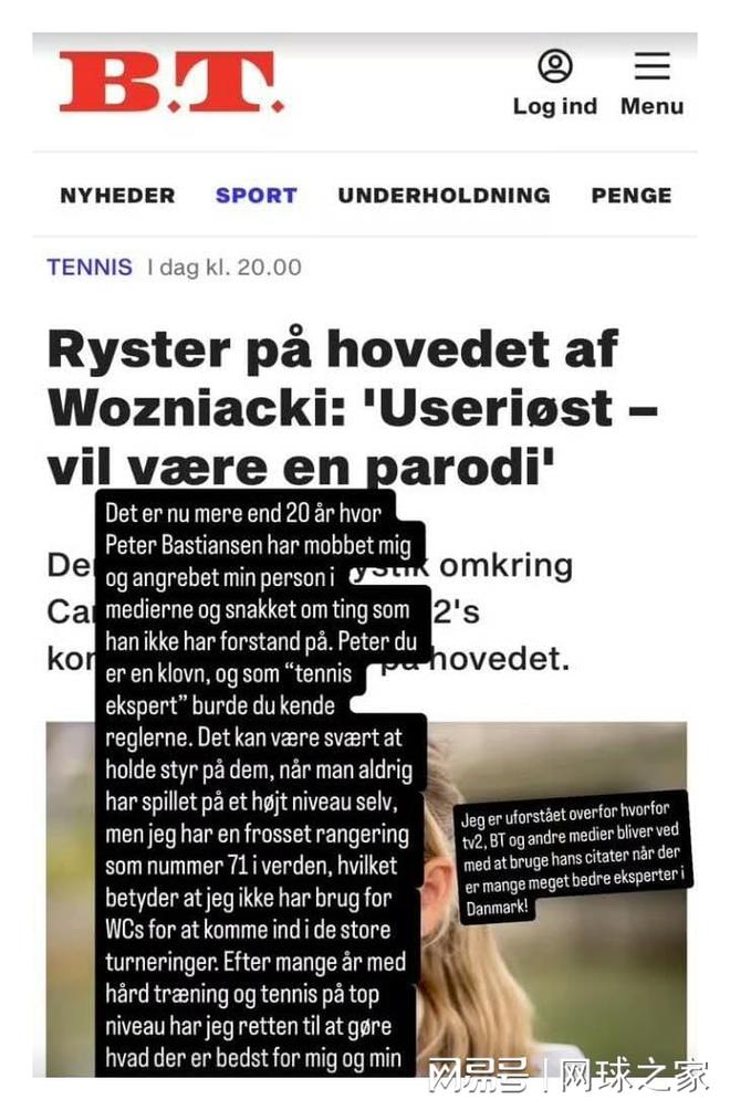 丹麦媒体BT近日发表了一篇关于沃兹尼亚奇复出可能性的文章,其中引用网球专家Peter Bastiansen的观点称 “如果沃兹尼亚奇决定复出,那将是轻率的”。