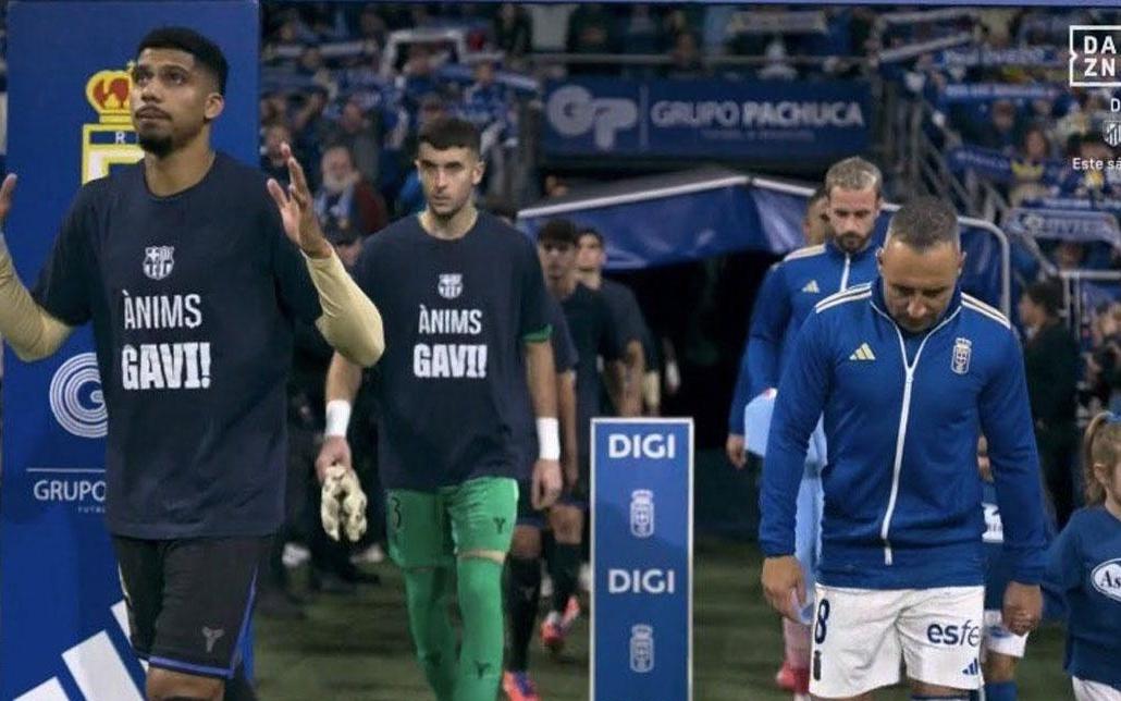 有爱的团队,对阵奥维耶多出场时巴萨球员身穿支持加维的T恤