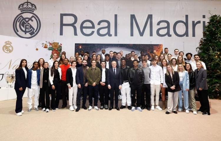12月13日讯 皇马男足、男篮、女足、女篮最近一起参加了俱乐部的圣诞派对,俱乐部官网发出合影。