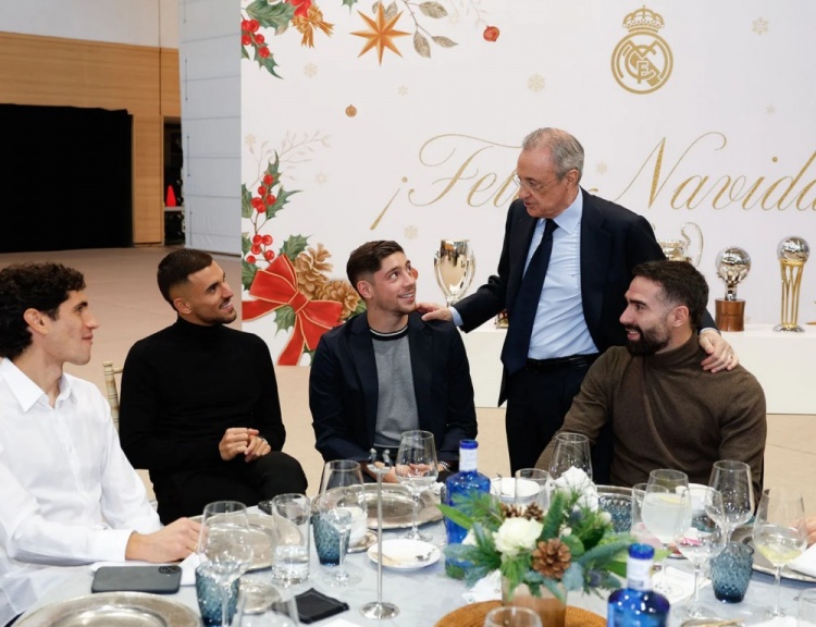 四支队伍的球员齐聚一堂,俱乐部主席弗洛伦蒂诺、荣誉主席何塞-马丁内斯-皮里和一些董事会成员也参加了聚会。