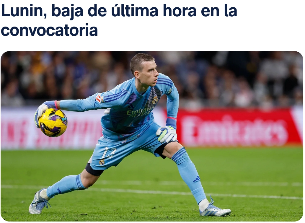 卢宁由于在昨天训练中右手受伤,将缺席今晚对阵皇家马洛卡的比赛,弗兰-冈萨雷斯进入球队名单。
