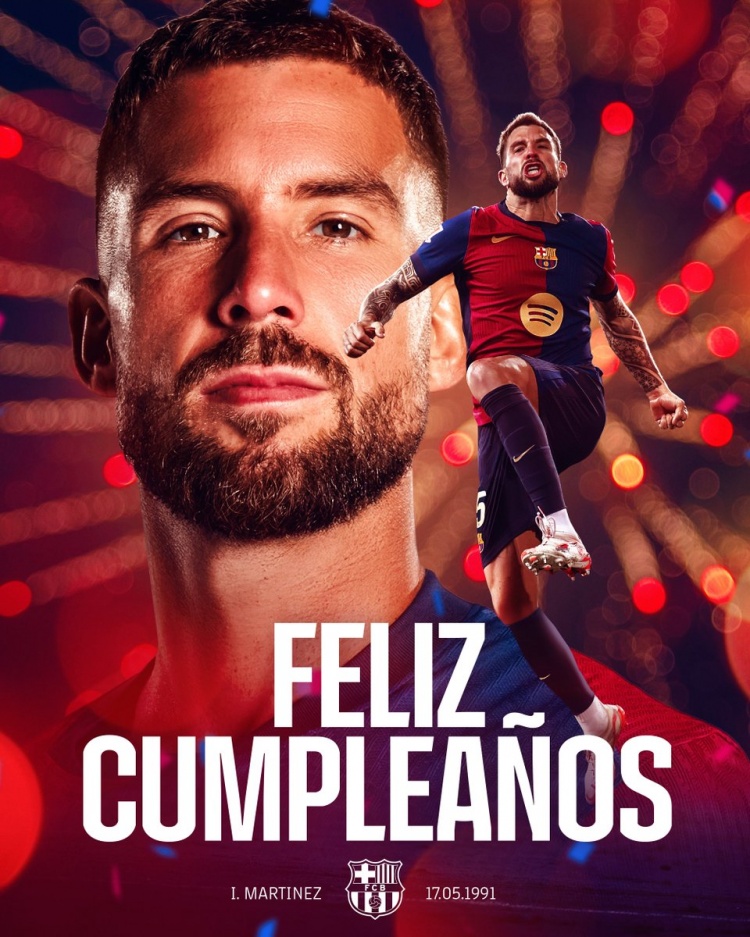 5月17日讯 巴萨官方晒图,祝贺了伊尼戈-马丁内斯34岁生日快乐。