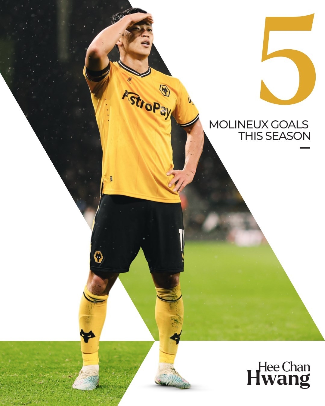 本赛季我狼每次在莫利纽比赛,黄喜灿都能取得进球!