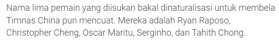 该媒体列出的5名球员分别是:Ryan Raposo(伍小海)、Christopher Cheng(郑泽彦)、Oscar Maritu(小奥斯卡)、Serginho(塞尔吉尼奥)、Tahith Chong(陈达毅)。