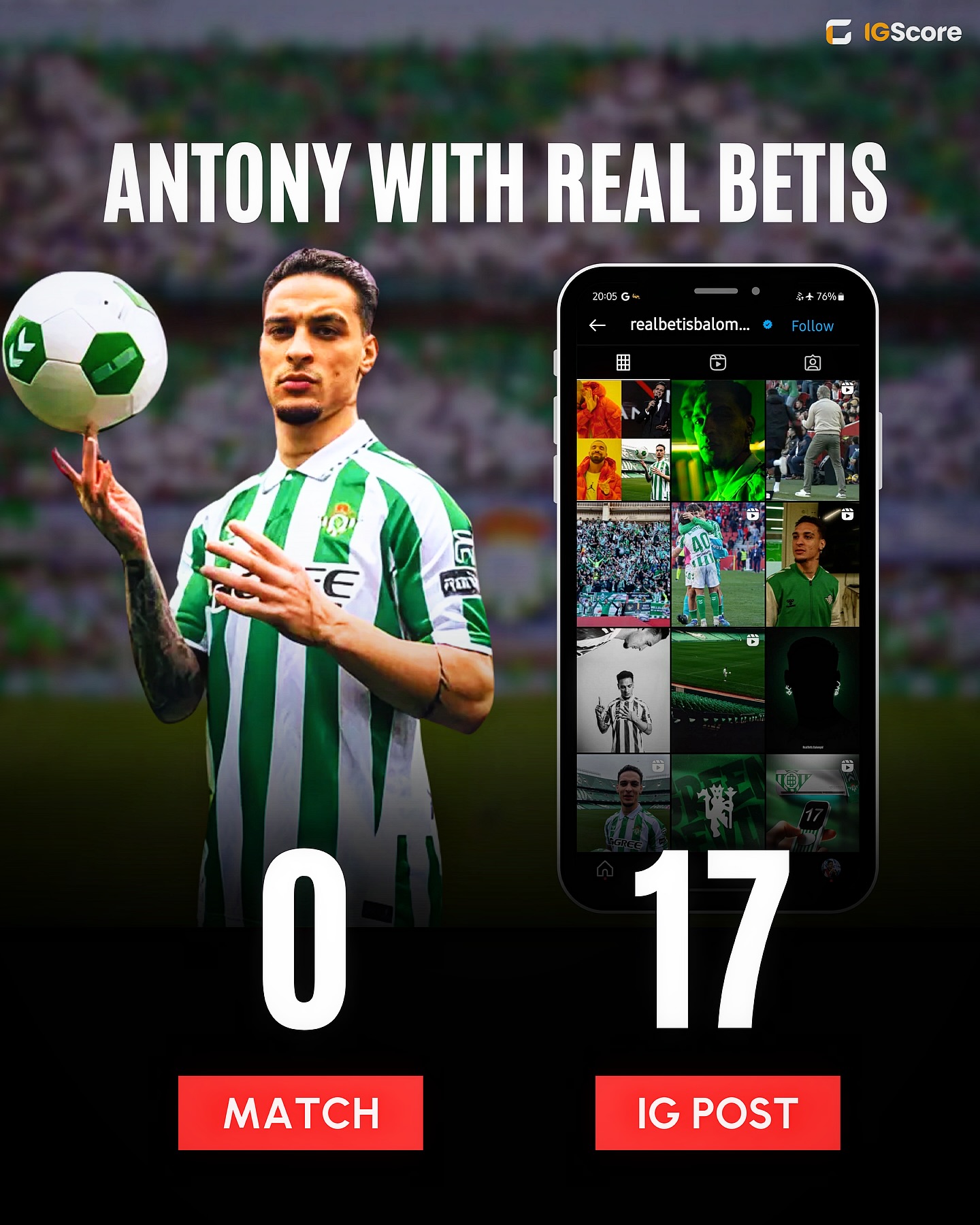 安东尼加盟贝蒂斯后还未出场,贝蒂斯官方已经发布了17条庆祝安东尼加盟的帖子。