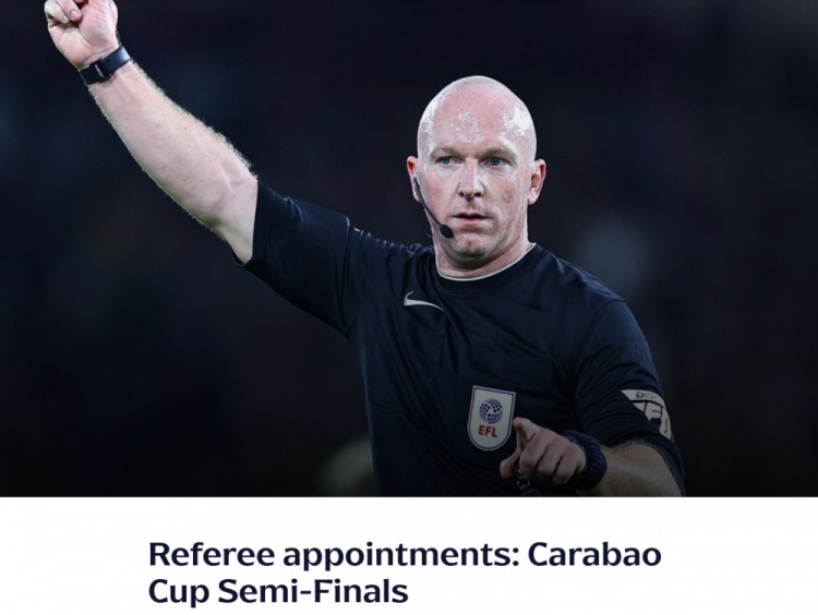 2月5日讯 联赛杯半决赛次回合执法裁判公布,西蒙-胡珀执法纽卡vs阿森纳,克雷格-鲍森执法利物浦vs热刺。