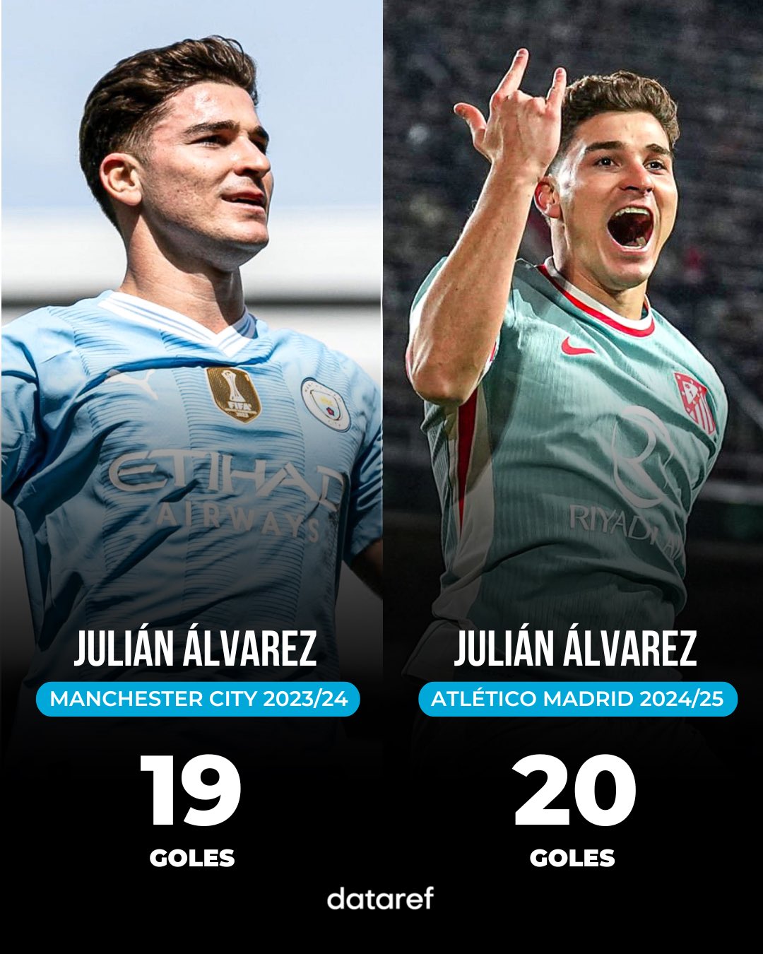 24/25赛季(马竞):小蜘蛛出场39次,20球5助,出场2562分钟