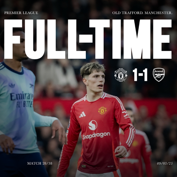 03月10日讯 英超第28轮,曼联1-1打平阿森纳。