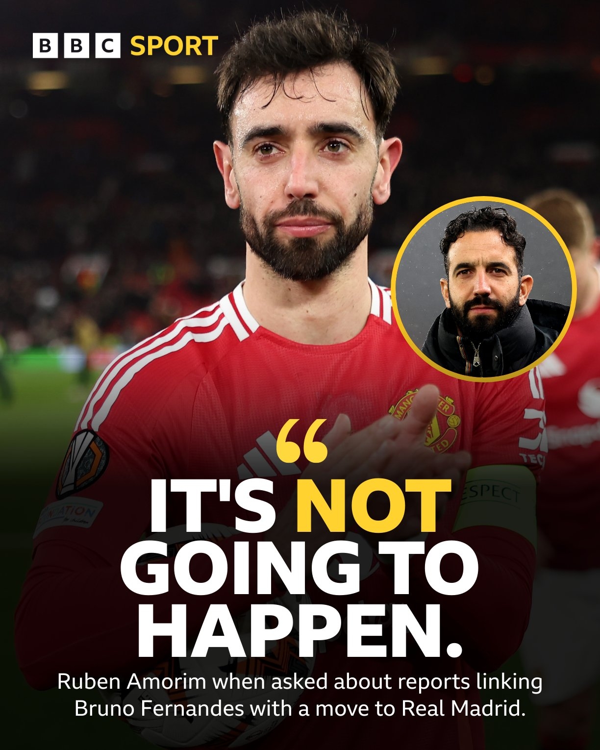 当被问及周末媒体曝出的“皇马有意B费”消息时,阿莫林回应道:“不可能,这不会发生。他哪都不会去,我已经告诉过他了。”
