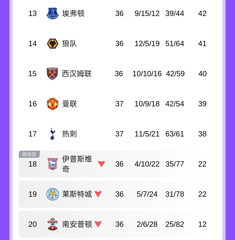 05月17日讯 英超第37轮,热刺0-2客负维拉,曼联0-1客负切尔西。