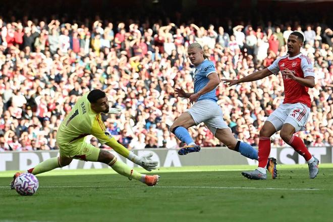 比赛进行到第9分钟,曼城本场的防守反击战术奏效,赖因德斯高速推进后将球分给前插的哈兰德,后者停球后面对门将冷静推射得手!曼城在客场1-0领先阿森纳。
