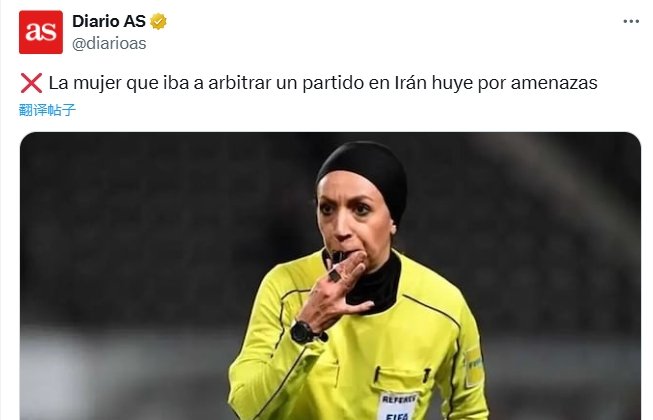 12月17日讯 来自伊朗媒体《哈米汉报》的消息,伊朗女裁判马赫萨-戈尔巴尼因受到人身威胁,目前已离开伊朗。