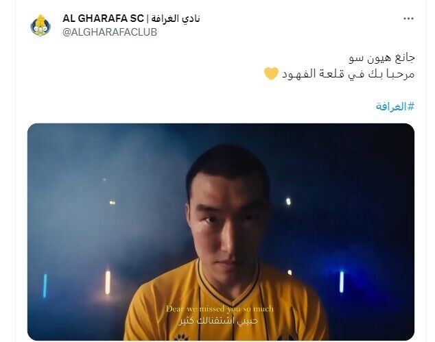 阿尔加拉法俱乐部在官方社媒宣布了张贤秀的加盟,他现在已经准备好和球队一起参加接下来的卡塔尔明星联赛。