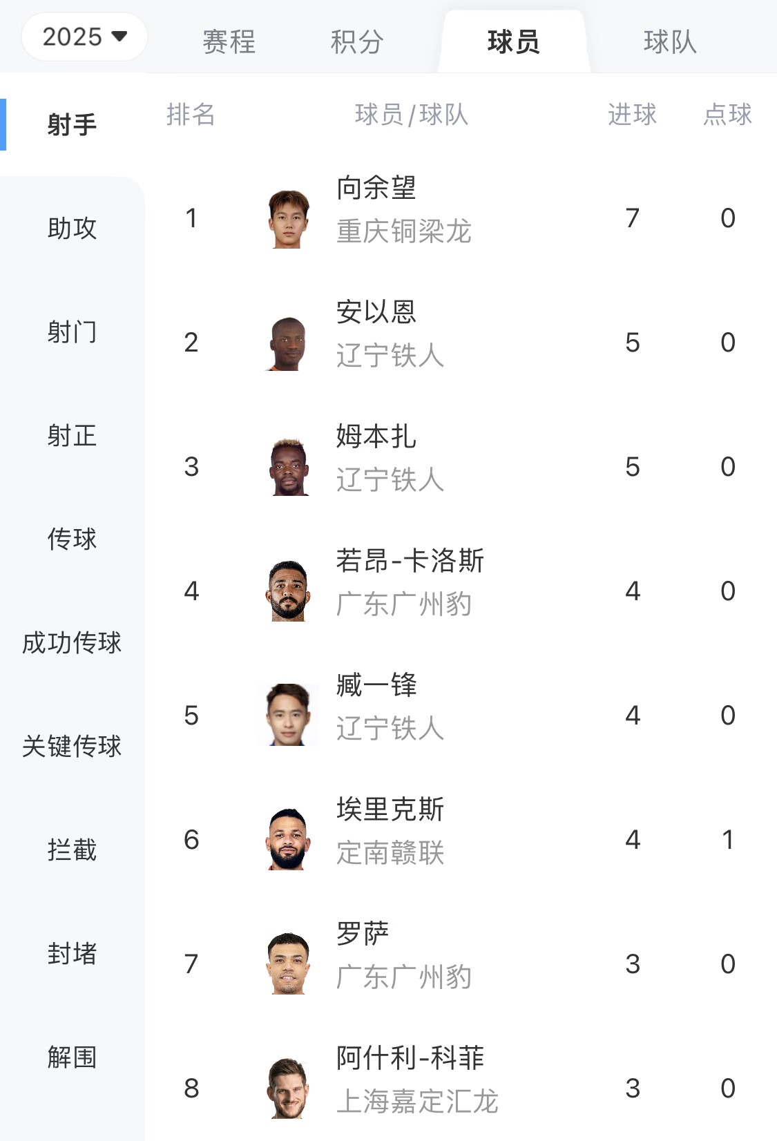 本赛季21岁的向余望在重庆铜梁龙表现出色,中甲5轮7球领跑射手榜。目前铜梁龙4胜1平积13分领跑中甲联赛。