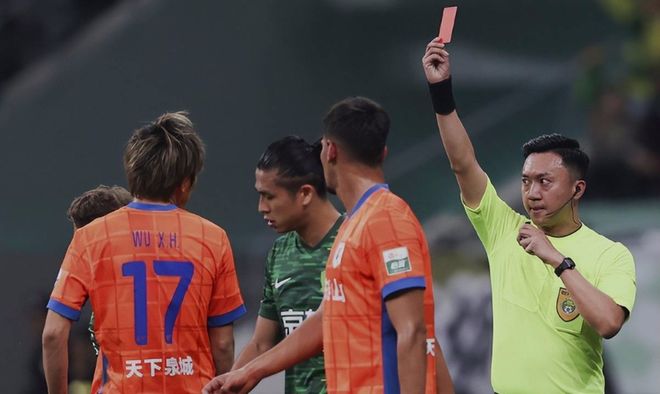 今年4月19日,在执法北京国安对阵山东泰山的中超比赛中,唐顺齐曾连续对泰山队出示两张红牌,罚下了吴兴涵和泽卡,导致泰山以1-6的大比分输给国安,那场比赛他的判罚引发争议。