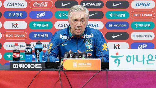 友谊赛对阵韩国赛前,巴西国家队主帅安切洛蒂出席了新闻发布会。