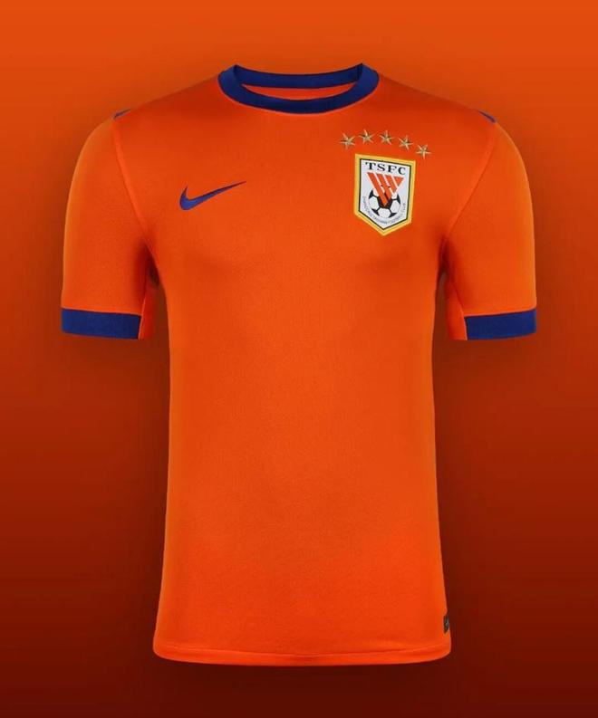 青岛海牛主场球衣通过由队徽向外延展的光影纹样呈现速度与活力。亮橙色辅以深蓝色点缀,视觉层次清晰而富有张力。